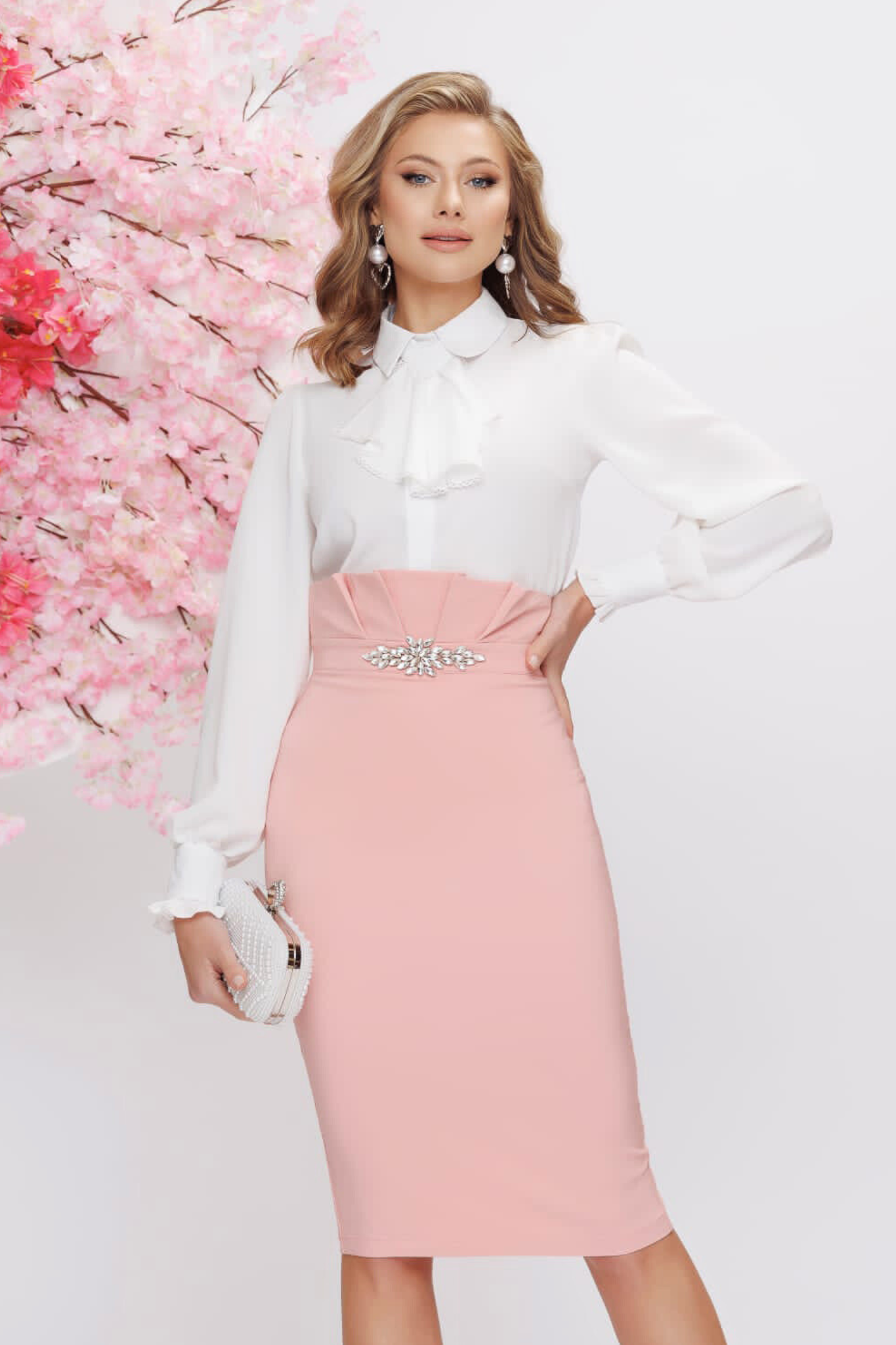 Camicia bianca Fofy a maniche lunghe con collo a camicia e jabout rimovibile rifinito con pizzo chantilly